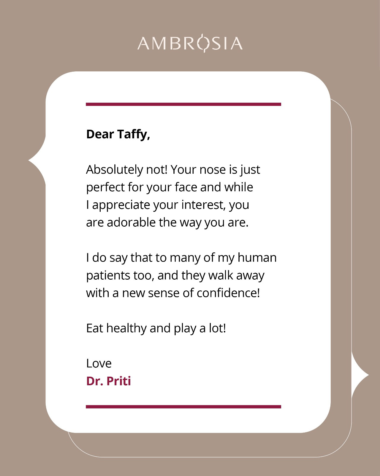 A super warm direct response carousel campaign for a plastic surgery clinic that makes everyone goes "Awwww"